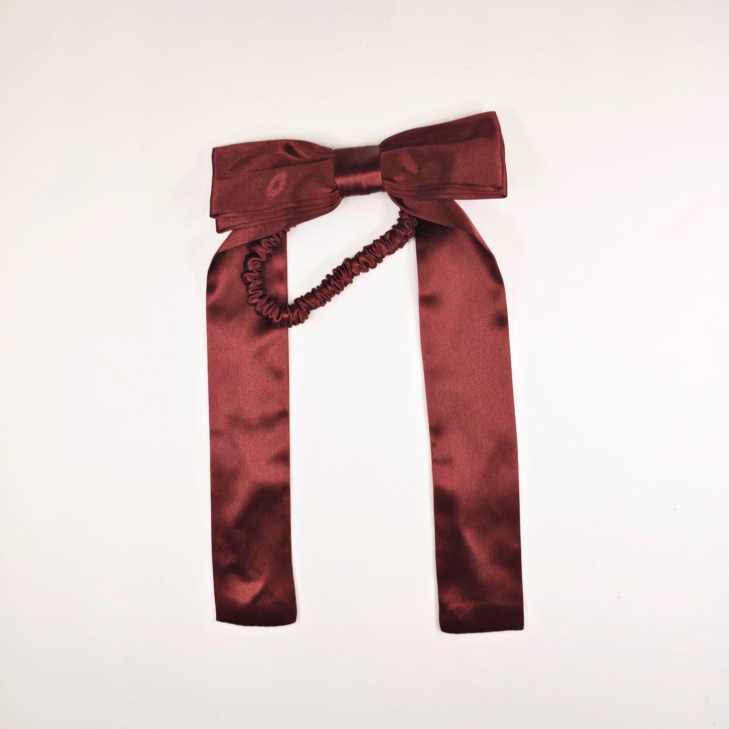 A sleek, structured silk bow meets our signature skinny scrunchie for the perfect blend of polish and practicality. Whether you're tying back a ponytail or finishing off a low bun, this piece adds instant elegance without pulling or snagging.